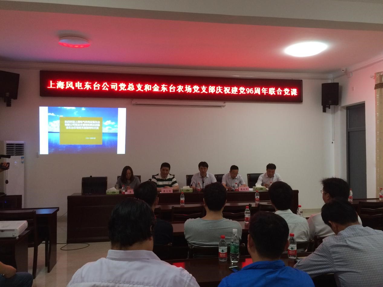 2017年6月27日上午,金東臺農場黨支部邀請上海電氣風電設備東臺有限公司黨總支到農場共同舉行“慶祝建黨96周年聯合黨課”主題活動。