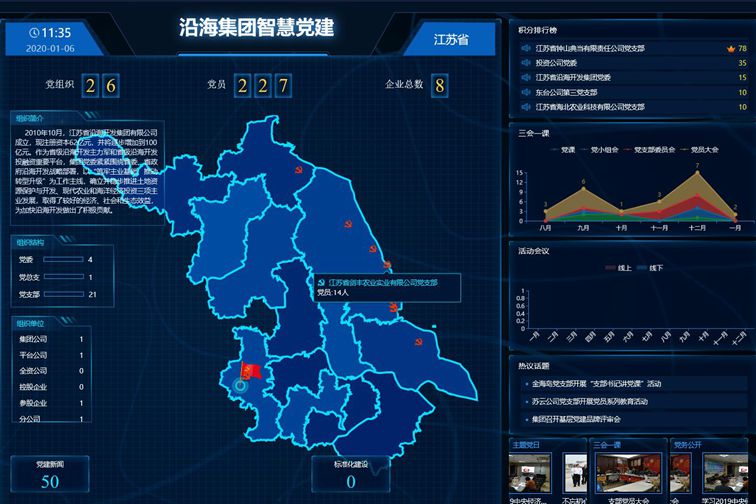 經(jīng)過2個月的測試運行,集團公司智慧黨建管理系統(tǒng)日前正式上線運行。智慧黨建管理系統(tǒng)集黨建宣傳、黨員教育、黨務管理為一體,包括管理員后臺、大數(shù)據(jù)可視化界面、黨建微信公眾號三個相互關聯(lián)的平臺。黨員關注并綁定微信公眾號即可參加所在黨組織學習活動,實現(xiàn)了黨員前端使用與管理員后端管理關聯(lián)、黨務工作線上線下聯(lián)通。