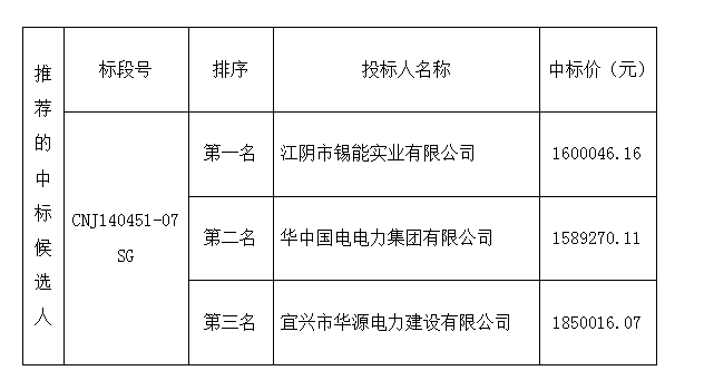 條子泥墾區(qū)(一期)條南片一至四區(qū)西片配套工程項目供電線路工程施工CNJ140451-07SG標段評標工作已經(jīng)結(jié)束,現(xiàn)將中標候選人公示如下: