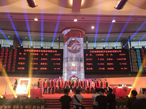 7月3日上午,集團參股企業江蘇省新能源開發股份有限公司(股票簡稱為“江蘇新能”,股票代碼“603693”)在上海證券交易所成功掛牌上市。