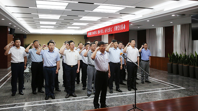集團黨委書記鄧東升帶領全體黨員進行重溫入黨誓詞儀式。鄧東升書記領誓,全體黨員面對鮮紅的黨旗激情飽滿、聲音高亢,每一句入黨誓詞都在大家耳邊不絕回響。