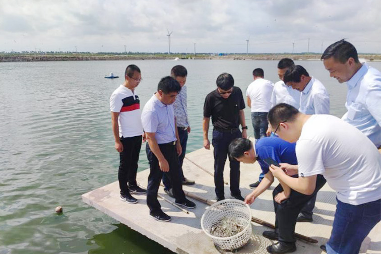 在金東臺公司海水自營養殖一線,鄧東升仔細詢問了1800余畝海水自營池塘的養殖情況,實地察看了脊尾白蝦、梭子蟹等水產品的生長情況,聽取了公司關于省農業重大技術(蝦蟹魚立體混養)協同推廣試點項目的介紹。鄧東升對金東臺公司海水自營養殖工作表示肯定,他要求,要強化養殖塘口安全管理,確保生產人員和在塘水產品的安全;要做好成品控制和成品銷售,建立健全養殖制度,制定海水養殖操作規程,規范養殖生產流程降低養殖風險,提高水產養殖經濟效益;要提升技術管理層次,加快技術團隊建設,組建培養自己的養殖技術團隊,讓精品養殖步入提質增效、轉型升級新階段。