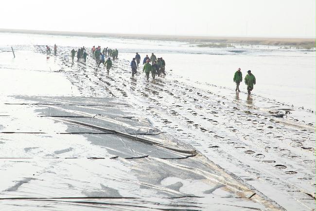 梁董事長指出,四標段工程施工工藝復雜、技術難度大、區域面廣、管理復雜、質量及安全要求高。要實施好此項工程,一是要周密部署、科學組織,進一步優化技術方案,加強作業現場管理,抓住冬季工程施工的黃金季節,保證人員、設備和資金投入,力爭在春節前實現主體工程合龍。二是要認真分析工程施工特點、難點以及工期、總體目標等,尤其要認真分析研究龍口封堵方案,科學制定施工組織設計,確保工程順利推進。三是要保證工程建設質量。條子泥匡圍項目工程規模大,環節多、影響質量的因素多,不論是哪個環節出了問題,都會影響工程質量。要落實好項目法人責任制、招標投標制和建設監理制,做好工程建設的質量控制、進度控制,確保萬無一失,把工程建設成為江蘇沿海灘涂圍墾的示范工程、樣板工程。