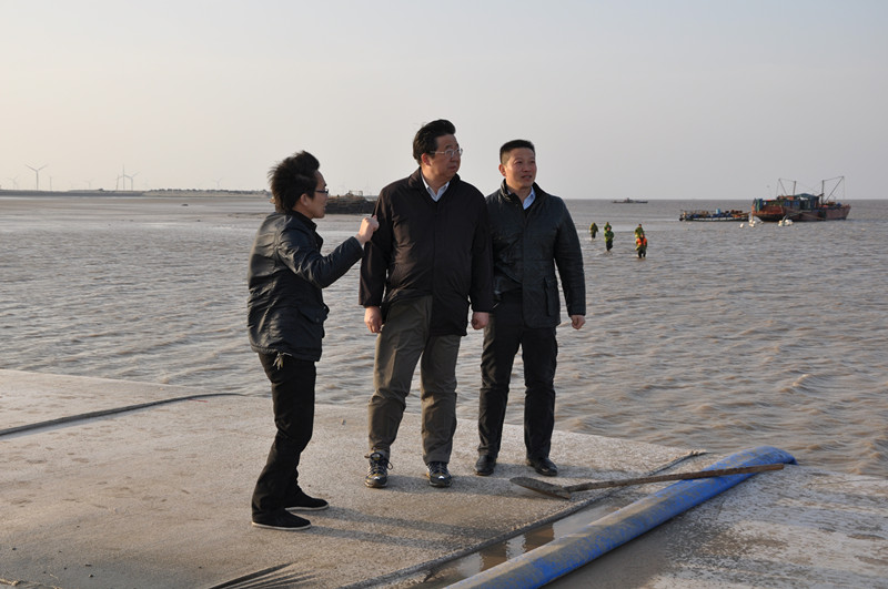 3月21日,集團公司董事長、黨委書記梁學忠來到條子泥匡圍項目施工現場,察看工程建設情況,省沿海開發(東臺)公司總經理周金陽陪同。