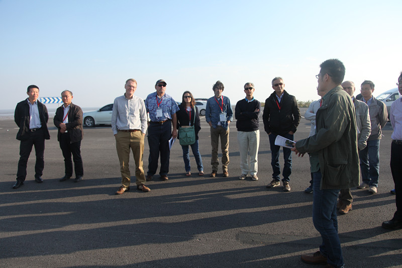 10月14日,參加第四屆“河口日”國際學術研討會的各位專家及學者來到條子泥高涂養殖圍墾項目現場,參觀現場工程建設、考察條子泥面域形態并充分開展調研。集團公司黨委委員、東臺公司總經理周金陽,東臺公司副總經理王海祥等在現場接待了考察團一行。
