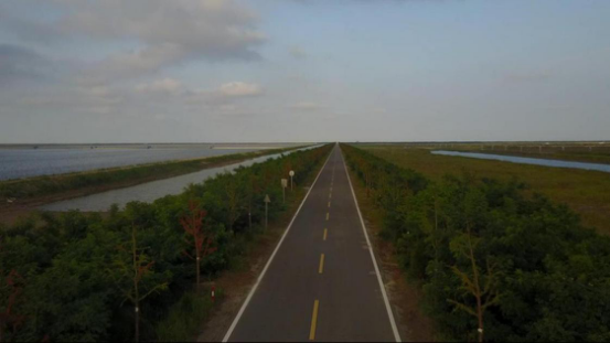 墾區在海堤施工完成后,立即進行了海堤內坡草皮移栽和植樹工作,達到了當年圍墾、當年植樹、當年成活的效果;對墾區內道路兩側均進行了植樹種草綠化,養殖塘口四周、生態水庫、溝渠兩側種植狗芽根、獐茅草、田菁、蘆葦等進行植被恢復;在局部條件具備區域試種耐鹽樹種,在開發成熟時,墾區內綠化率將達到20%以上。