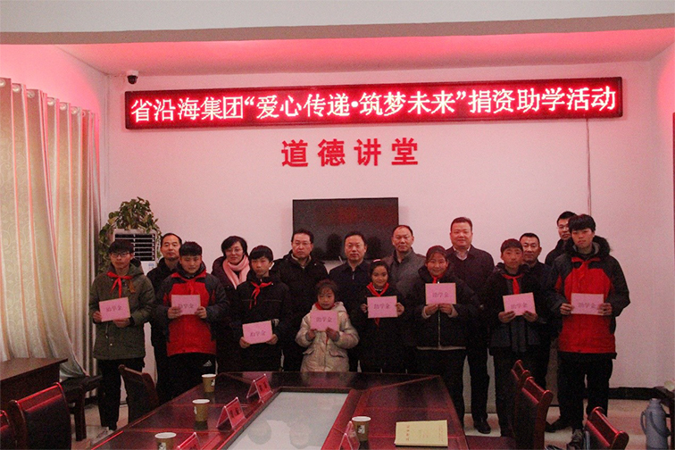 歲暮冬寒,愛心送暖。1月12日,省沿海集團(tuán)組織開展2021年度“愛心傳遞·筑夢未來”捐資助學(xué)活動。集團(tuán)系統(tǒng)廣大干部員工積極響應(yīng)、踴躍參與、自愿捐款、爭獻(xiàn)愛心,共募捐愛心款6.6萬元,所籌善款將用于幫扶灌云縣圩豐鎮(zhèn)東圩村貧困學(xué)生和困難家庭。1月15日,集團(tuán)公司在灌云縣圩豐鎮(zhèn)東圩村村部舉辦簡樸的捐資助學(xué)儀式,集團(tuán)公司副總經(jīng)理田鎖慶出席儀式并代表集團(tuán)系統(tǒng)全體干部員工向東圩村受助學(xué)生發(fā)放助學(xué)金。
