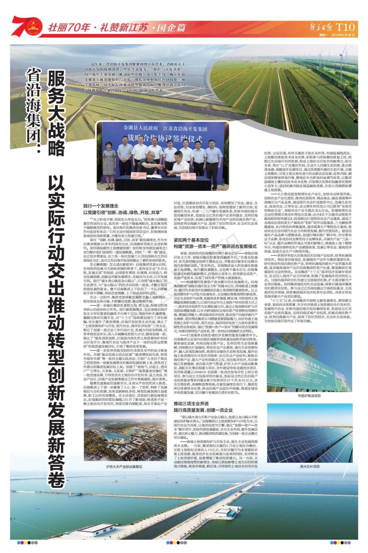 《新華日報》整版報道省沿海開發集團推動轉型創新發展“新答卷”