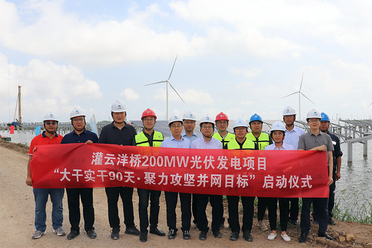 近日,灌云洋橋200MW漁光一體光伏發電平價上網項目現場氣氛熱烈,海通富公司會同管理中心及2個標段的總承辦單位舉行了“奮戰90天,拼搏930”攻堅活動啟動儀式。投資公司黨委書記、董事長胡國平參加活動。