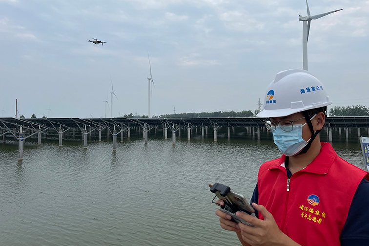 湛藍的光伏板整齊劃一鋪展開來,這里是連云港灌云縣洋橋漁光項目現場,工程占地三千余畝,塘梗岸線全長約一萬六千米,項目已經安全運營5個月,在工程管理部楊維新看來,“生產安全”始終是第一準則。面對安全巡檢有困難的實際,楊維新創(chuàng)新安全監(jiān)督方式,利用無人機擔任空中“執(zhí)法員”精準定位,更全面地巡查施工作業(yè)現場,同時協(xié)同監(jiān)理、安全管理人員完成線下安全隱患排查治理,安全監(jiān)管閉環(huán)管理。“無人機+”將安全巡檢時間從原先一小時縮減至十分鐘,極大提高了安全巡檢效率,同時也減少了管理成本。