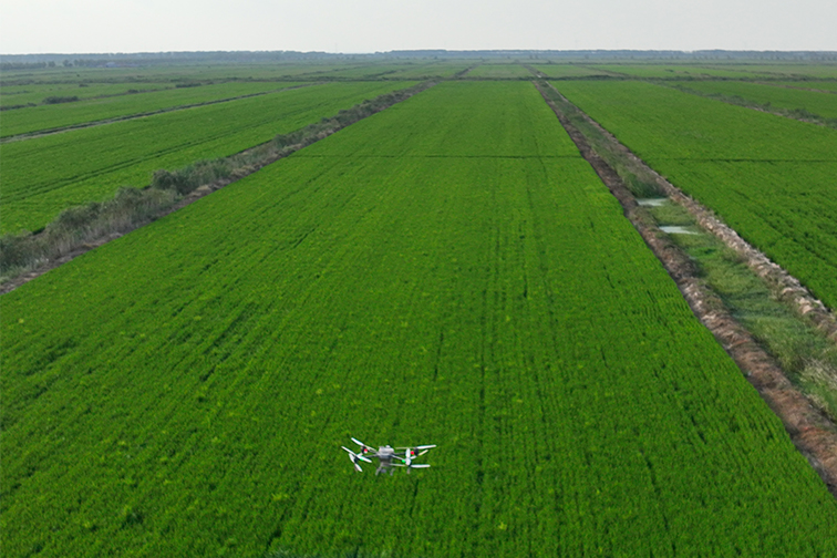 田間管理也需要“精打細算”。往年,農機田管是常態化操作,機輪碾壓會產生機耕道,損壞2%至3%面積的耕種面積,對于擁有3萬余畝自營土地的射陽分公司來說,將會損耗500余畝良田。射陽分公司勇于探索,積極實踐,利用無人機進行稻田管理,預先在電腦上規劃好飛行路線,讓無人機自行作業,將苗情“盡收眼底”,整片農田得到了充分利用,不僅減少了人工成本和機械損耗,又有效解決了傳統農機拋肥打藥低效、浪費問題,提升畝均產量,實現降本增效。