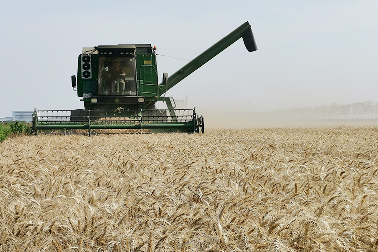 金穗卷起千層浪,又是一年農(nóng)忙時。放眼望去,聯(lián)合收割機(jī)來回穿梭于自營小麥田,一束束麥穗瞬間變成一顆顆飽滿的麥粒,隨風(fēng)跳躍。農(nóng)機(jī)逐浪,顆粒歸倉,倉東公司自營小麥喜獲豐收。