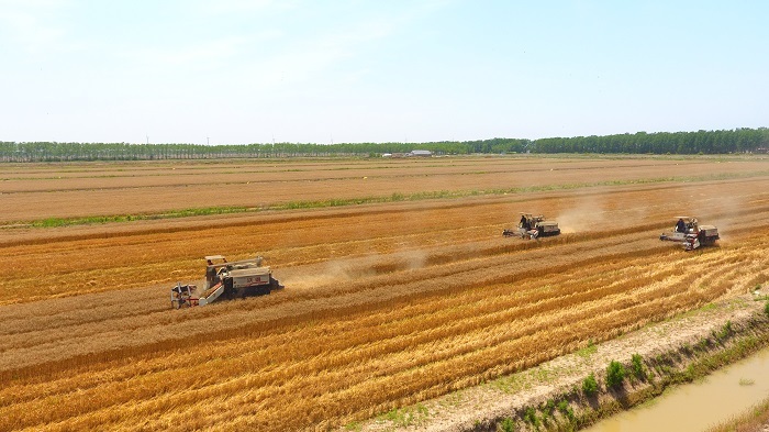 抓搶收就是抓“戰機”。農發大豐分公司最先開始油菜收割,本次收割面積12711畝,現已全面完成收割任務,共收獲油菜籽2045多噸。農發公司射陽分公司在此次收割任務中面積最大,3萬余畝大小麥全面開鐮收割,據統計,農發射陽分公司夏收總面積共33730畝,預計收獲大小麥16000余噸。另一組搶收“戰績”在農發金東臺分公司,今年夏收面積1.3萬畝,1萬畝小麥在5個晴天內,3千畝油菜在3個晴天內全部搶收結束。農發公司緊緊圍繞保糧食、保質量、保進度、保安全的“四?!蹦繕耍瑥娀M織保障,注重統籌協調,凝聚強大合力,做到搶收、搶烘、搶儲、搶銷、搶種、搶管,堅決打贏“三夏”生產攻堅戰,在確保夏糧顆粒歸倉的同時,為秋糧增產豐收筑牢基礎。