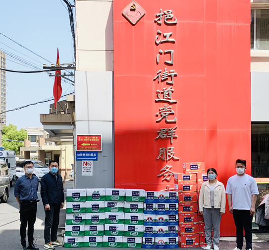 4月8日上午,為助力社區疫情防控,踐行國企責任和擔當,省蘇糖副食黨支部聯合貴州珍酒釀酒有限公司向南京市鼓樓區挹江門街道辦事處及丁山社區捐贈一批愛心物資。