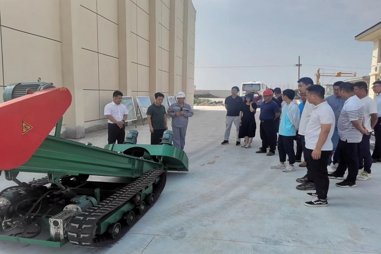 扒谷機是糧倉內常用機械,是糧食出庫作業的第一環節設備,直接決定了出庫效率的高低。今年夏收期間,糧食科技產業園6棟平房倉陸續交付使用,在糧食出庫作業過程中,生產人員發現傳統雙翼輪扒谷機在糧堆中行走時車輪容易陷入糧堆,導致設備移動困難,不能靈活調節鏟斗高度、進給量,扒糧時需要2名工人輔助喂料。一旦需要移動就必須四五個人同時輔助推動,存在糧食出庫產量低,作業人員勞動強度大,且潛伏著一定的安全隱患等諸多問題。