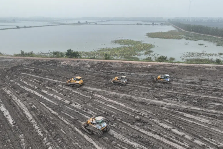 金湖縣寶應湖退圩還湖項目排泥場1#地塊土方平整施工現場