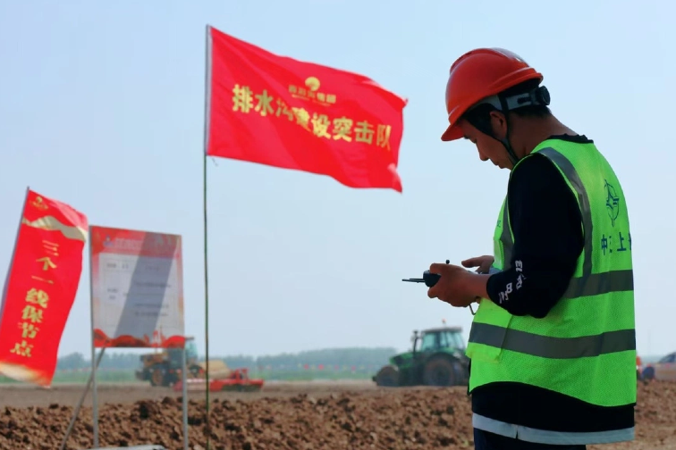 多措并舉,攻堅克難推進建設。圍繞按期完成建設任務、實現新增耕地指標入庫目標,公司黨委制定專項行動方案,成立攻堅會戰指揮部,統籌一線力量,以黨員干部、業務骨干為核心,優化配置班組人員,組建黨員先鋒隊、青年突擊隊,劃定會戰責任區。根據項目特點,針對性優化組織實施方案,增加資源投入,完善工作流程,明確攻堅節點。建設者們倒排工期、掛圖作戰,指揮部內插紅旗、標進度,項目現場搶工期、趕進度。一面面小紅旗“攻城拔寨”見證了項目建設“加速度”。