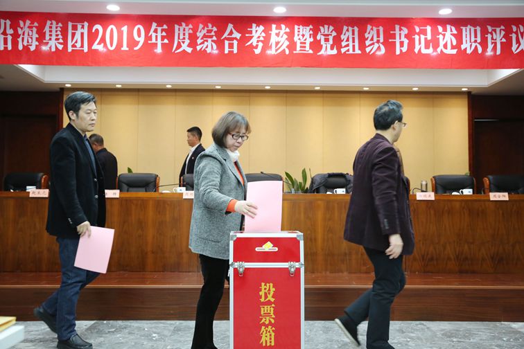 集團黨委委員、副總經理田鎖慶代表集團黨委作2019年度選人用人工作報告。與會人員對職能部門及負責人、直屬黨組織書記進行年度民主測評,并對集團選人用人工作進行評議。