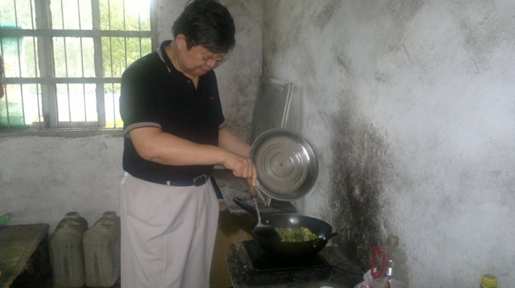 梁學忠董事長在農場職工廚房