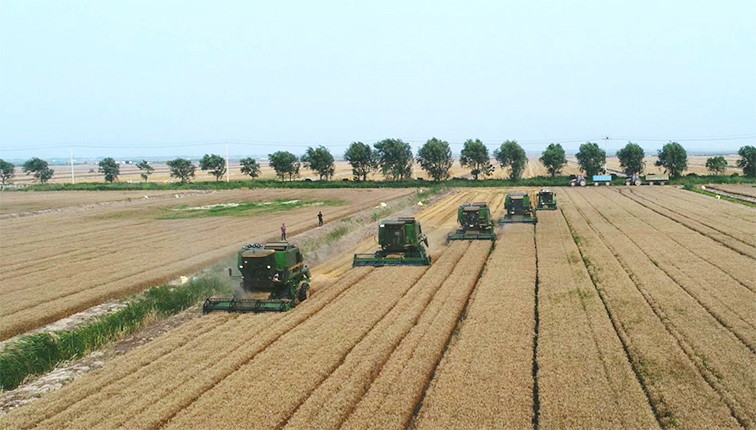 強化人機保障,確保收割質效。一是人員下沉田頭,嚴把小麥收割質量關。片區全體管理人員、技術人員全部下沉到田間地頭,監督檢查每塊田的收割質量和留茬高度,確保收獲后田間無漏割現象,秸稈根茬粉粹拋撒均勻,無堆積和條狀堆積。二是配足機械設備,狠抓收割進度關。確保各大隊按照不少于400畝/天收割量要求配備收割機和運糧車,在騰茬環節上,千方百計抓速度、搶進度,為夏種工作爭取時間,贏得主動權。