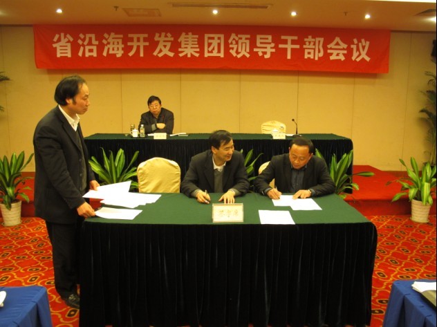 3月23日,省沿海開發(fā)集團(tuán)在寧舉行2012年度目標(biāo)責(zé)任狀簽訂儀式,集團(tuán)公司領(lǐng)導(dǎo)、省國資委駐集團(tuán)監(jiān)事會(huì)朱愛春處長、本部各部門負(fù)責(zé)人、全資及控股企業(yè)主要負(fù)責(zé)人、參股企業(yè)我方派出負(fù)責(zé)人參加了儀式。集團(tuán)公司副總經(jīng)理陳才俊、唐正東分別代表集團(tuán)公司與各全資及控股一產(chǎn)企業(yè)和部分三產(chǎn)企業(yè)簽訂了2012年度經(jīng)濟(jì)目標(biāo)責(zé)任書。副總經(jīng)理丁建明和唐正東分別與各單位簽訂了黨風(fēng)廉政建設(shè)和安全生產(chǎn)責(zé)任狀。隨后,相關(guān)單位主要負(fù)責(zé)同志分別就本單位合并管理以及領(lǐng)導(dǎo)班子充實(shí)調(diào)整后的工作情況及近期工作安排作了交流發(fā)言。梁學(xué)忠董事長最后就班子建設(shè)和制度建設(shè)提出四點(diǎn)要求:一是要以民主集中制為核心,不斷加強(qiáng)各單位的制度建設(shè)。特別是涉及到三重一大的事情要進(jìn)一步建立健全集體決策和分工負(fù)責(zé)制度,充分發(fā)揮每個(gè)班子成員的作用;二是要以單位主要領(lǐng)導(dǎo)為重點(diǎn)不斷加強(qiáng)廉政建設(shè)。主要領(lǐng)導(dǎo)要主動(dòng)地、自覺地把自己的言行置于制度之內(nèi),置于監(jiān)督之中;三是要以解決問題為目標(biāo)提高班子的戰(zhàn)斗能力,不能回避矛盾,切實(shí)提高駕馭和解決問題的能力;四是要以思想作風(fēng)建設(shè)為重點(diǎn),提高班子的凝聚力。不僅要自己消化問題,還要以人為本地做好職工的思想政治工作。