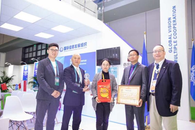 11月6日,在第三屆中國國際進口博覽會上,省沿海集團東臺公司“條子泥”品牌系列產品,從參展的數百家國內外知名同行產品中脫穎而出,被屬于聯合國經濟及社會理事會特殊咨商地位的非政府組織國際信息發展組織授予“千年金獎”之科技創新進步獎,用以表彰東臺公司在鹽堿地改造及糧食安全科技創新方面發揮的全球示范作用。國際信息發展組織主席李世恩為公司頒發 “千年金獎”獎杯和證書。