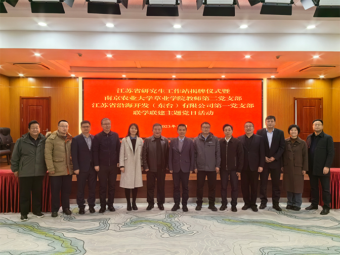 11月30日,由東臺公司與南京農業大學聯合建設的江蘇省研究生工作站揭牌儀式暨東臺公司第一黨支部與南京農業大學草業學院教師第二黨支部聯學聯建主題黨日活動在東臺公司舉行。集團黨委書記、董事長許峰,副總經理、黨委委員胡國平,南京農業大學黨委副書記吳榮順,草業學院黨委書記李俊龍,研究生院相關負責人,草業學院教師代表及東臺公司領導班子等出席活動儀式。