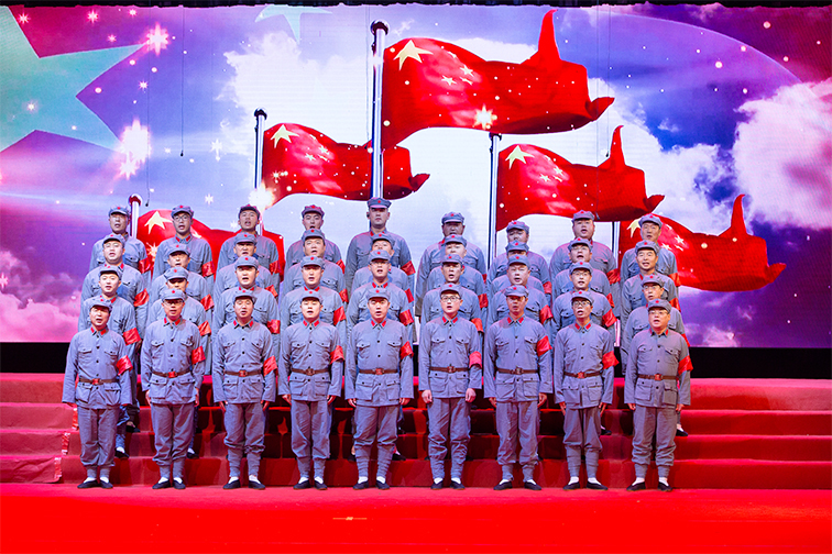 盛世華誕篇章中《東方紅》《追尋》《我和我的祖國》等歌曲的演繹充滿對祖國的深情與熱愛;星火燎原篇章中《工農(nóng)兵聯(lián)合起來》《人民軍隊心向黨》《映山紅》《蘇區(qū)干部好作風》《過雪山草地》仿佛帶大家回到了當年共產(chǎn)黨人野火燒不盡,春風吹又生的革命年代;抗日烽火篇章中《河邊對口曲》《彈起我心愛的土琵琶》《地道戰(zhàn)》《保衛(wèi)黃河》還原軍民一心、誓死抗日的場景,觸動人心;戰(zhàn)地黃花篇章中《解放區(qū)的天》《南泥灣》《延安頌》《繡紅旗》《我的祖國》給大家?guī)砹朔榛鹣鯚熤械陌矊幣c希望;火紅年代篇章中《社會主義好》《學習雷鋒好榜樣》《我們走在大路上》《我為祖國獻石油》讓大家感受到了為建設祖國貢獻力量的自豪之情;改革春風篇章中《春天的故事》《我的中國心》以及青春回響組合等節(jié)目充滿對祖國未來的信心與新時代中國人的活力;走向復興篇章中《不忘初心》《中國脊梁》《陽光路上》《走向復興》等歌曲斗志昂揚,將整個歌詠會推向高潮,全體沿海人為祖國更好的明天歡欣鼓舞,最后,歌詠會在全體演員《歌唱祖國》的歌聲中落下帷幕。