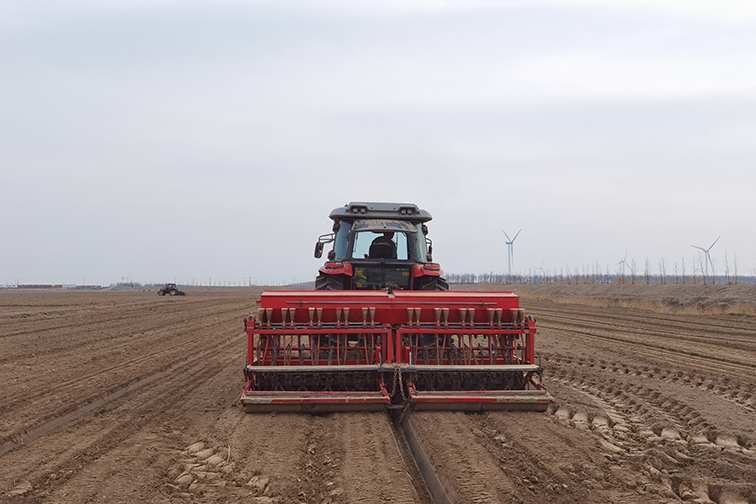 在水產養殖示范基地正北邊,是東臺公司鹽土農業示范區地。把鹽堿地變成豐產田,選育耐鹽堿作物是重要途徑,這片鹽堿地已經開發出高粱米、藜麥、三色薯、耐鹽秈稻等產品,總結提升了“藜麥+”輪作栽培模式,并探索出藜麥機械化種植技術。去年秋季,條子泥墾區開展了大豆玉米復合試驗推廣種植,首次種植獲得了良好效果,鹽堿地上孕育出了新希望。春節假期剛過,東臺公司種植團隊借助江蘇省農科院、鹽城市農科院鹽土農業研究室專業力量,就過去一年的鹽土農業開發相關的技術創制、基礎研究進展、產品開發等進行復盤。團隊成員正按時序積極做好種質資源圃小區整理、種質篩選、土地耕翻,土壤摸底取樣檢測等工作。