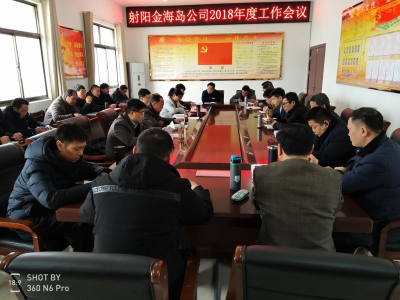 3月21日上午,金海島公司召開2018年度工作會議,會議由公司副經理陸中陽同志主持,公司全體員工參加了會議。
