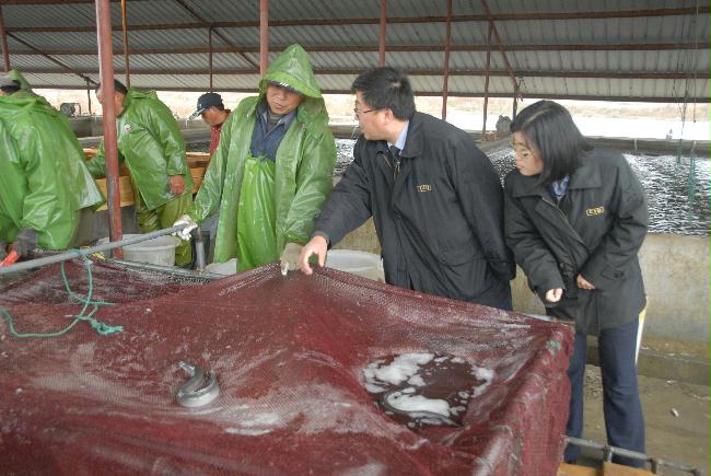 11月21日,鹽城市出入境檢驗檢疫局檢查組到金東臺農場檢查出口水產品質量安全示范區日常監管工作。檢查小組認真聽取了質量安全示范區建設領導小組副組長、金東臺農場場長任之華的匯報。隨后,檢查小組仔細察看了日常監管記錄,并冒雨親赴各塘口檢查,悉心詢問投入品使用情況以及具體的監管措施,通報了國家對投入品最新的監管要求,對個別細節問題提出了整改意見。最后,檢查小組對日常監管整體工作表示滿意,并指出,示范區的監管方式是行之有效的,通過規范、合理、嚴格的質量安全監管,示范區的放心農產品大大豐富了居民的菜籃子。